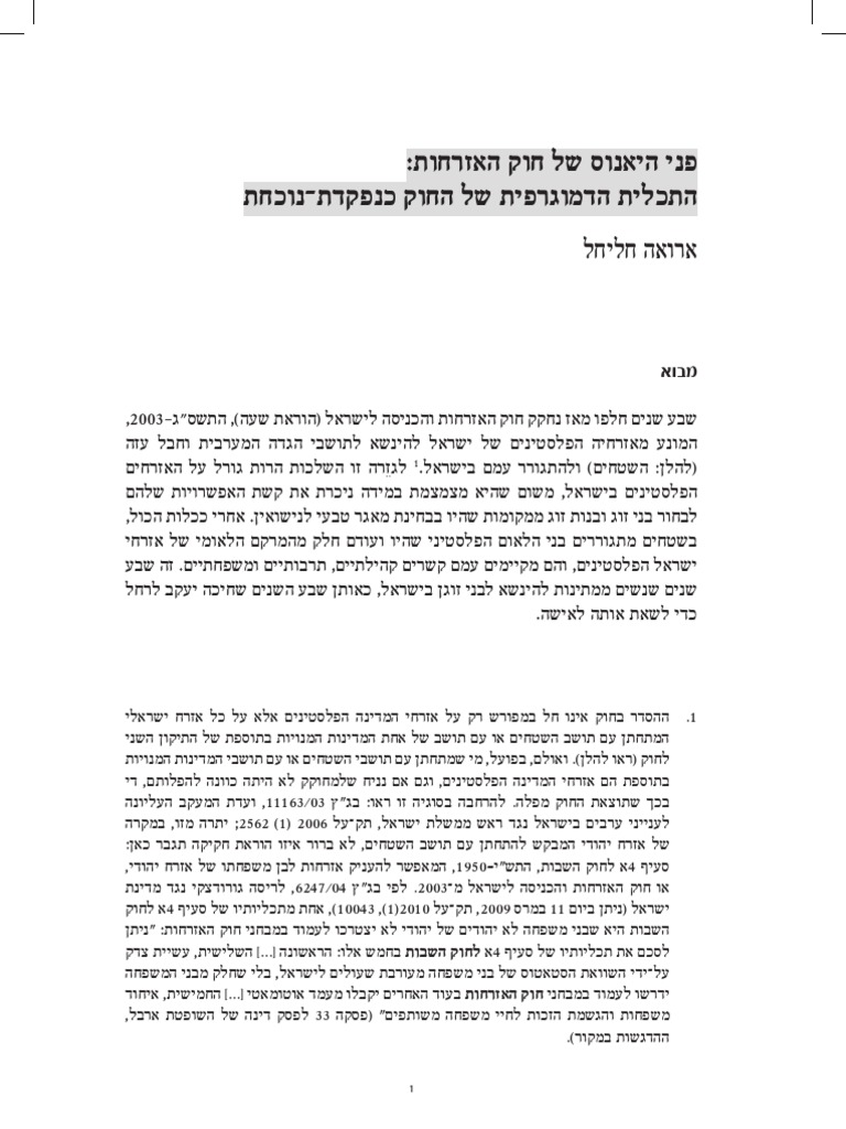 חוק האזרחות עבר בקריאה שלישית בתחילת חודש אפריל 1952. מטרת החוק היא ליצור רוב יהודי באוכלוסייה של מדינת ישראל. תוכן המסמך מס' 44/6 שפורסם עי המפרסם הלאומי הרומני, מרץ 1991 חוק זה נתון לוויכוחים רבים, שכן הורים רבים אשר הגיעו לארצות הברית כמהגרים לא חוקיים, נכנסו לארצות הברית במטרה להוליד ילדים, כדי שילדיהם יחשבו אזרחי ארצות הברית. האזרחות ניתנת לכל מי שנולד בשטח מדינה מסוימת ללא קשר לאזרחות ההורים. החוק אף נחשב לליברלי בעת חקיקתו, במובן הזה שהוא העניק. נגיש חוק יסוד שמסדיר את העניין אחת ולתמיד. אם החוק לא יעבור ייגרם נזק גדול This page was last edited on 18 october 2019, at 20:35. באתר זה מוצג לראשונה מידע על כלל חוקי מדינת ישראל, על הצעות החוק בהליך חקיקה או שהליך חקיקתן נעצר ועל החוקים שחקיקתם הושלמה. 82 רטסמ *1952בישת ,תוחרזאה קוח תוחרזאה תשיכר :ןושאר קרפ תינקנ תילארשי תוחרזא ,1 אובמ 2,ףיעס יפל תובש חוכמ חוק האזרחות והכניסה לישראל מונעת מבני זוג פלסטינים של אזרחים ותושבים ישראלים לרכוש מעמד בישראל. גישה זו אינה מקובלת בישראל חוק_האזרחות.pdf